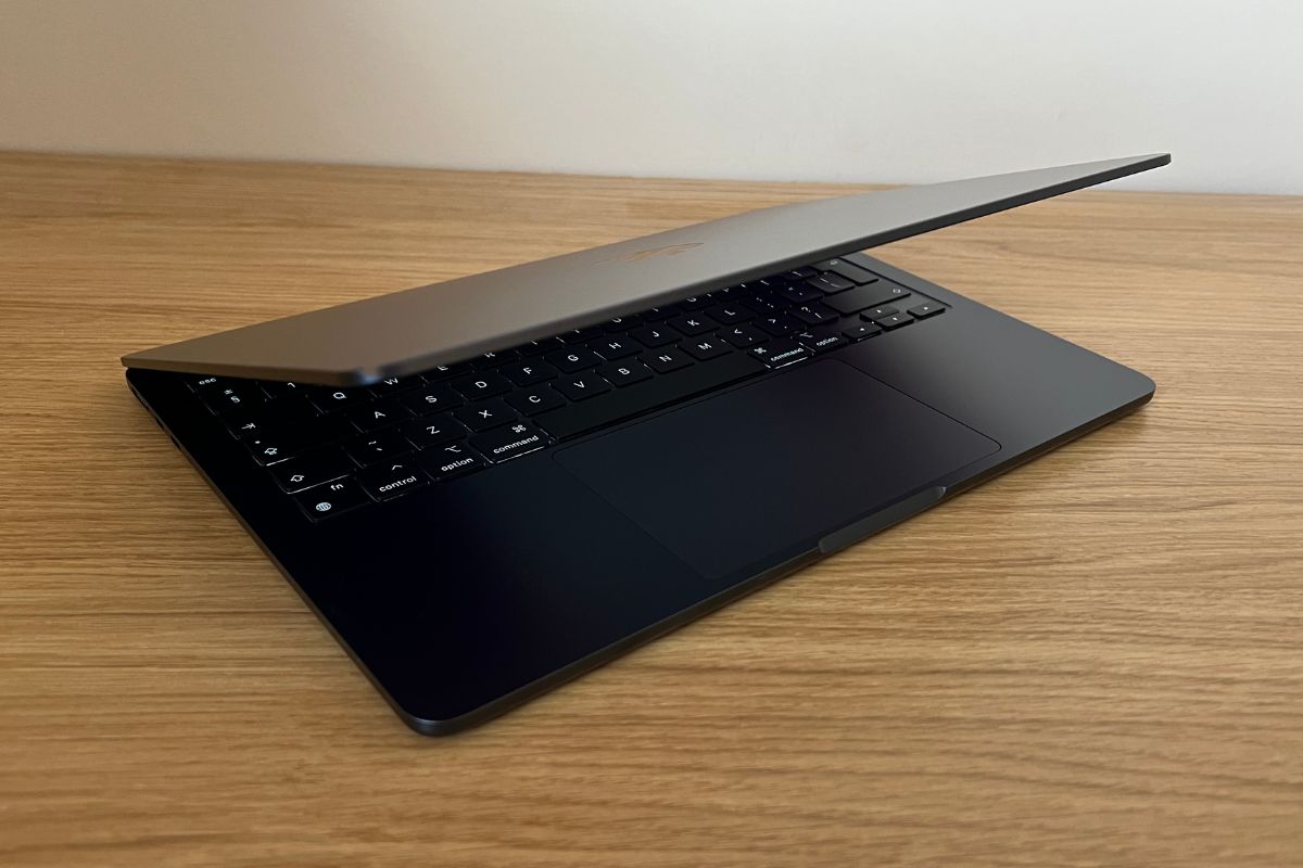 The second you take the new M2 MacBook Air out of the box the thinness of the machine instantly becomes apparent. The all-aluminium unibody enclosure, in four new finishes — midnight, starlight, silver, and space gray, feels sturdy, with Apple removing the classic MacBook Air wedge design, making the machine the same thickness at the front as it is at the back.