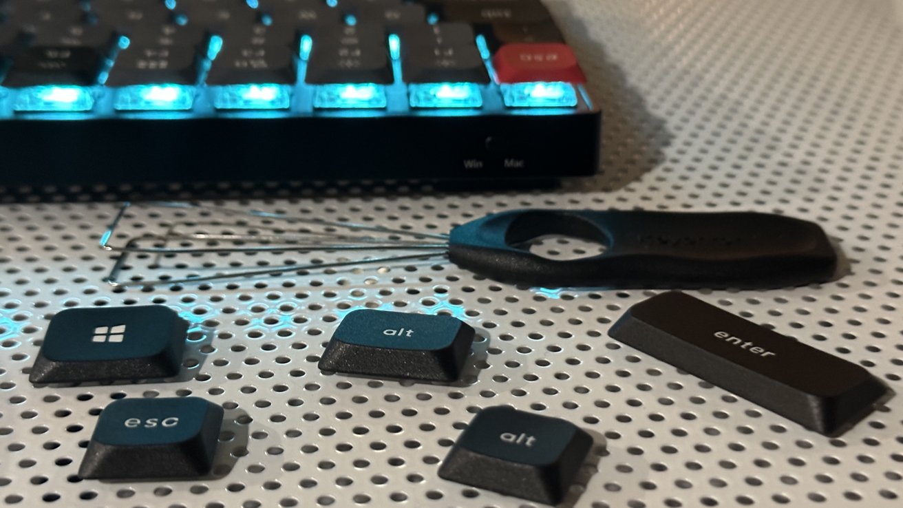 For those who alternate between Mac and Windows setups, the keyboard has a switch to change between the operating systems. It also ships with both Windows and Mac key sets, allowing for easier long-term transitioning between computers.